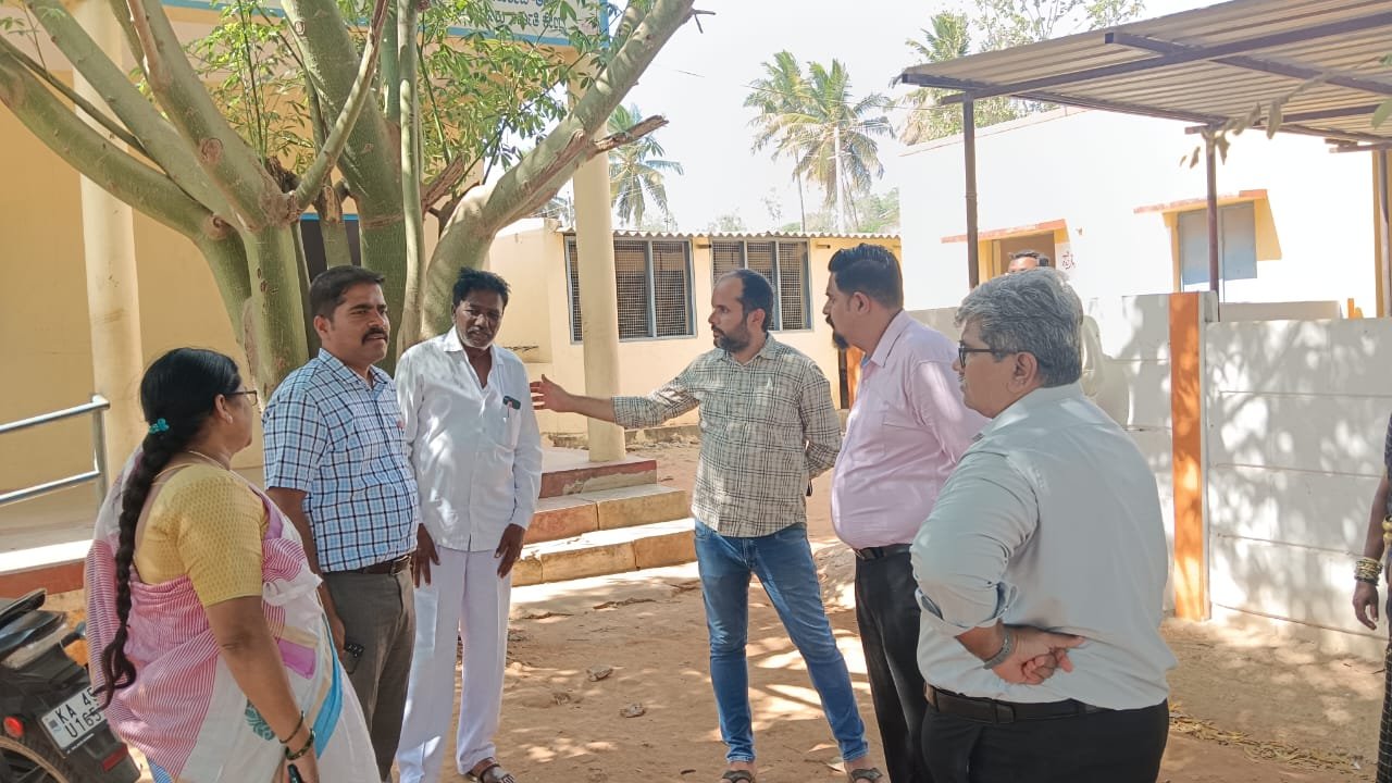 • Lakshmi Sagaar, Kiran Roberrt, and I, along with Raghunath (Additional Director), Rajesh (Engineer), the PDO of Madhapura, a Panchayat member, and the school’s teachers, conducted a detailed discussion and site visit regarding the ongoing construction of the compound, toilets, and renovation work at the school.